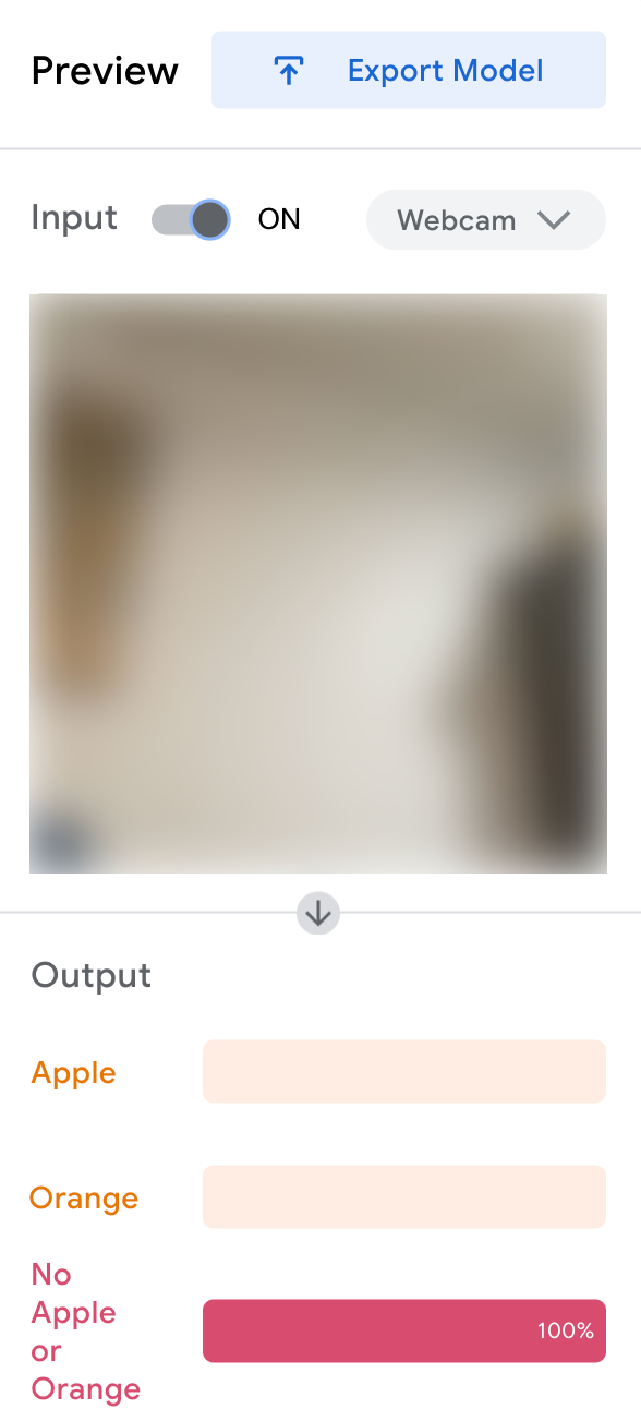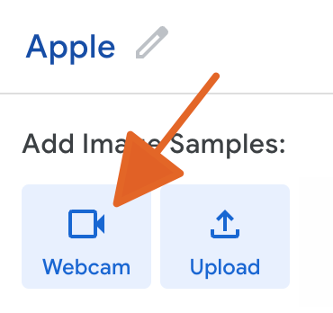 - Put your apple aside and grab your orange. Repeat the process above to train your model for Class 2. Try to capture roughly the same number of images for the orange as you did for the apple.
