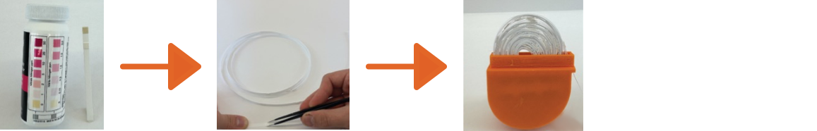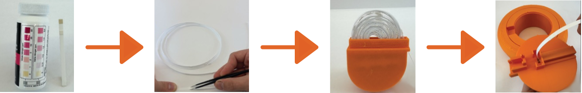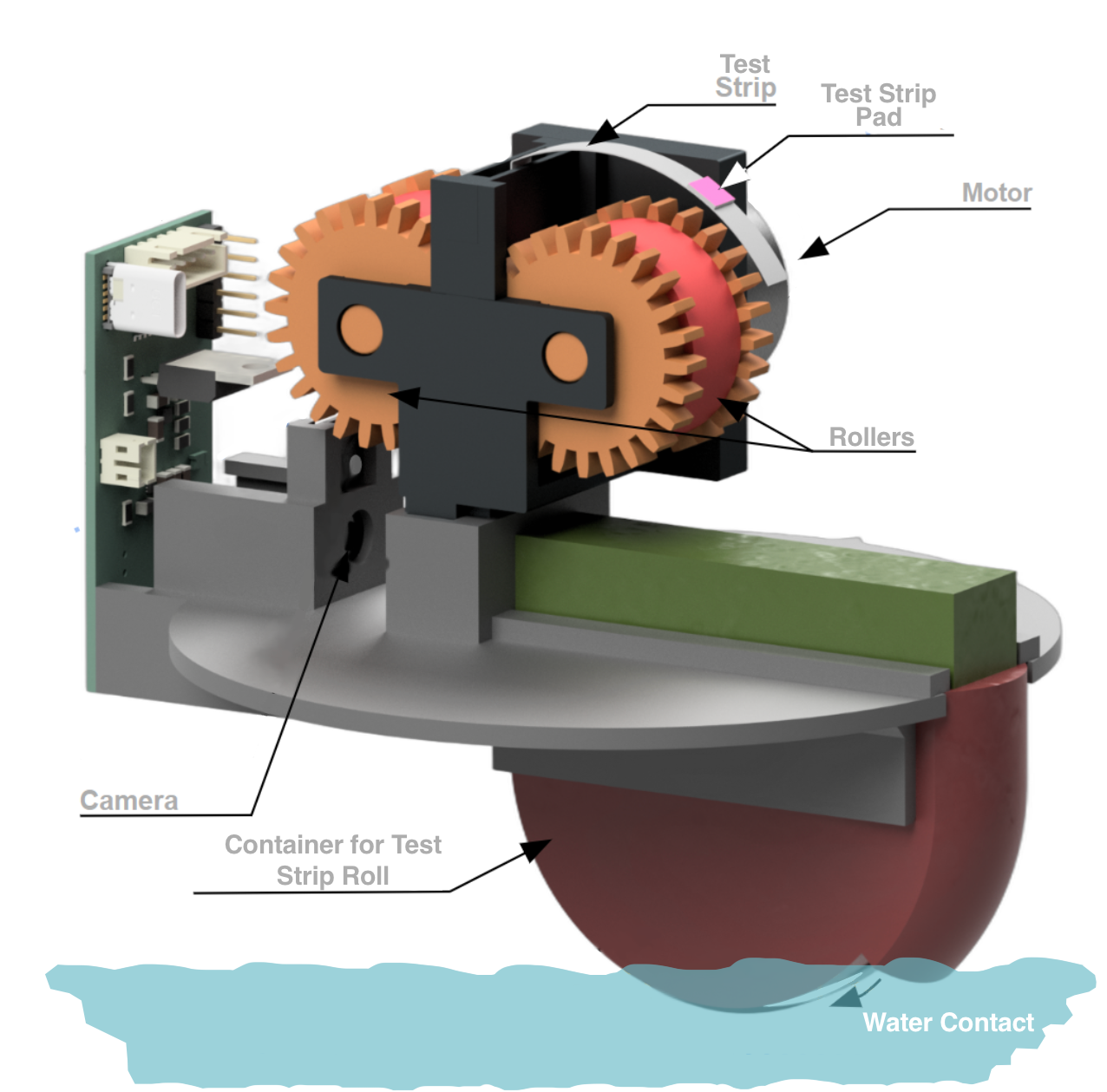 There is an opening in a chamber of the canister, allowing the strip to contact the water.